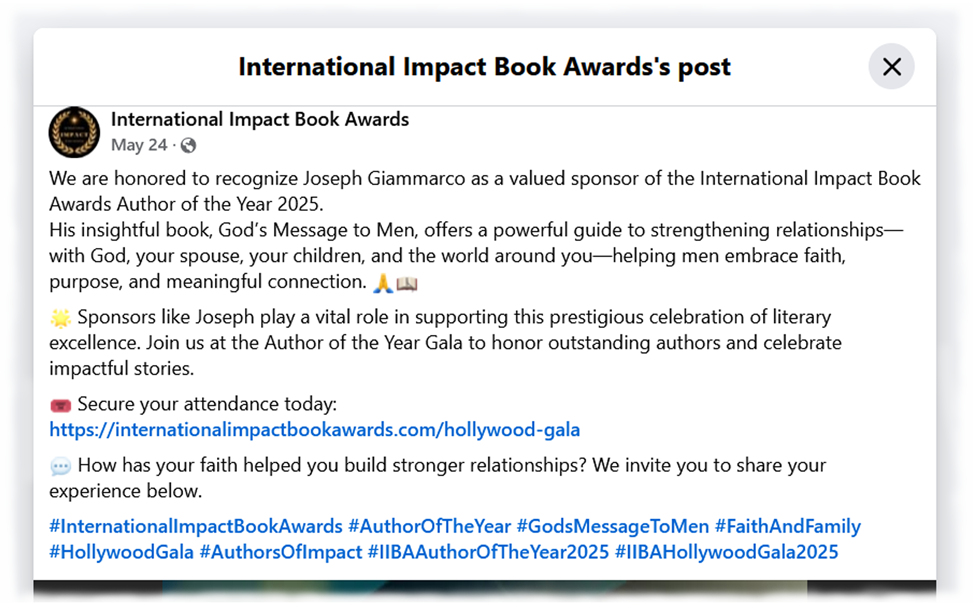 Joseph Giammarco is an Italian-American author, born in Columbus, Ohio, to parents who immigrated from Italy after World War II. Drawing from his rich cultural heritage and personal experiences, Joseph has crafted a deeply insightful guide, Strengthening Your Relationship with God, Your Spouse, Your Children, and Your World. Through his writing, he shares practical wisdom for building strong, meaningful connections in all areas of life—faith, family, and community. His journey as a son, husband, and father has shaped his unique perspective on faith and love, making his work both relatable and inspiring to readers of all backgrounds...….
